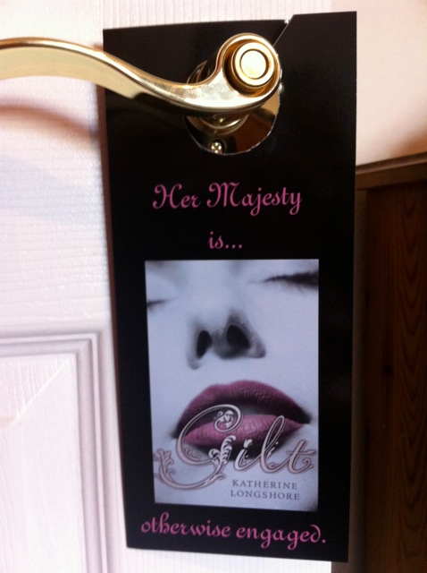 Because you are all so kind, I want to add a little more to the giveaway. I wish I had more than one ARC, but since I don't, I'll be giving away three GILT-themed door hangers and five signed bookmarks as well. But hurry, the contest ends at 12 midnight EST. Comment, tweet with the #giltnovel hashtag or make a Facebook post to enter. Full details here.